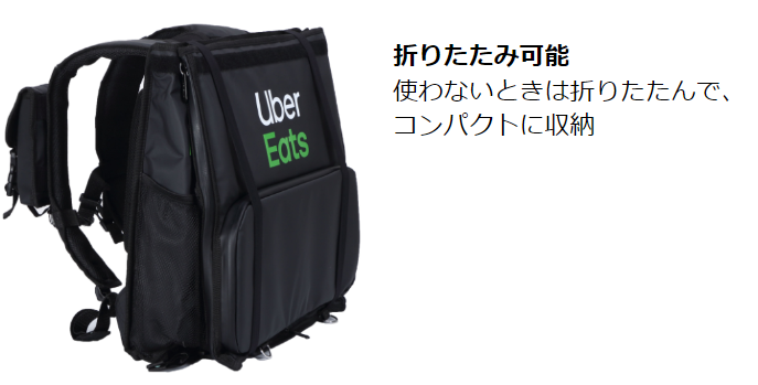 Uber Eats のバッグは折りたたんで収納することができます。使わない時期はたたんで省スペースでしまえるので心配無用です。