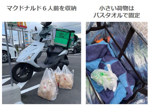 「Uber Eats の配達バッグに、荷物(商品)は入りきるのか?」